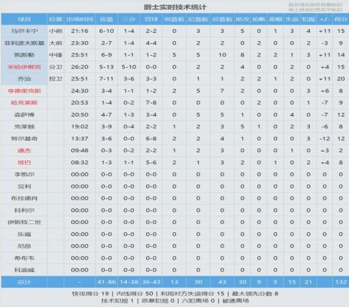 全场结束,爵士132-129战胜开拓者。开拓者全队38次犯规,两人6犯离场。最后看看数据,说说你的心情: