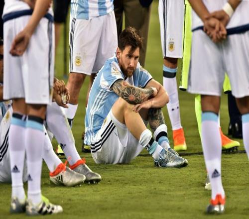2016年6月26日,百年美洲杯决赛,阿根廷点球2-4不敌智利,连续三年大赛屈居亚军。梅西在点球大战踢飞了点球,赛后梅西坐在地上,心灰意冷,不久后宣布退出国家队。