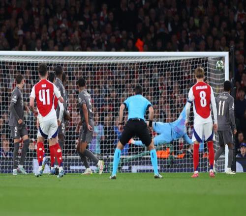 2025年4月8日,欧冠1/4决赛首回合,阿森纳主场3-0完胜皇家马德里。下半场,赖斯连续轰入两脚任意球世界波,尤其是第二粒任意球更是被形象的评价为“贴邮票进球”,让世界最佳门将库尔图瓦成为背景。